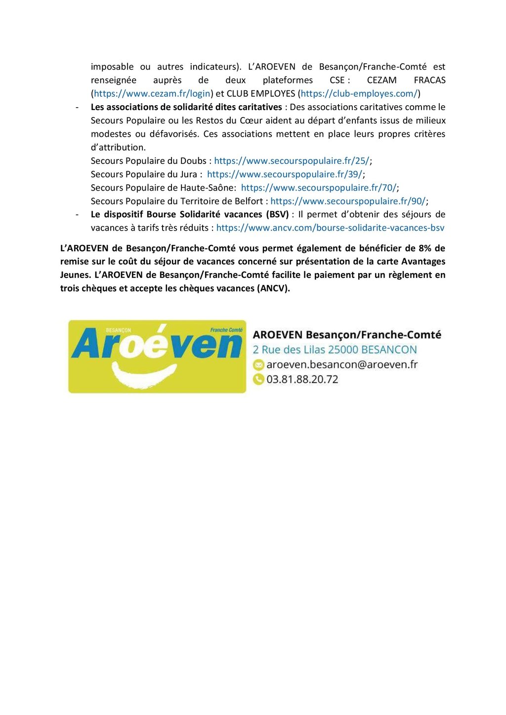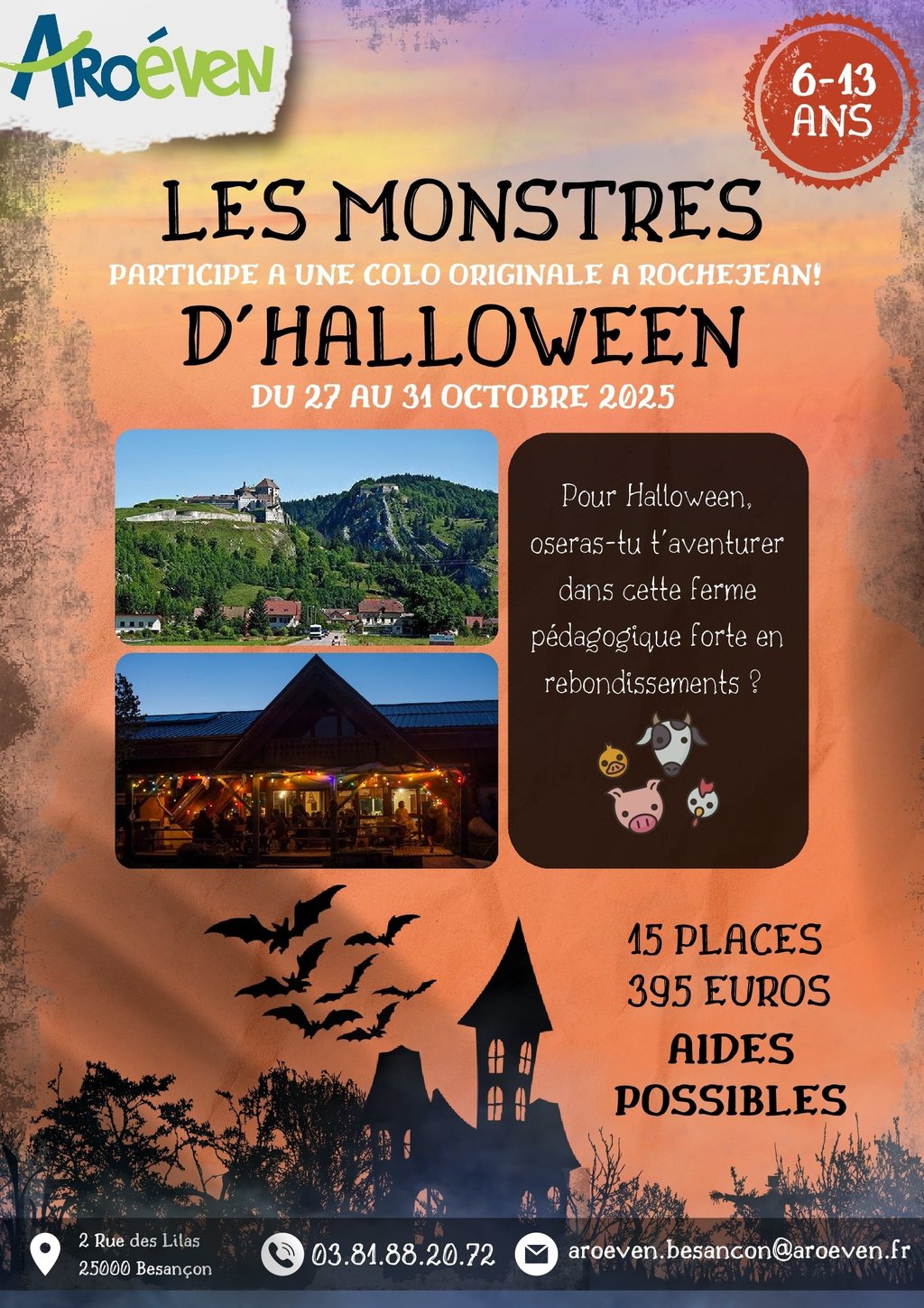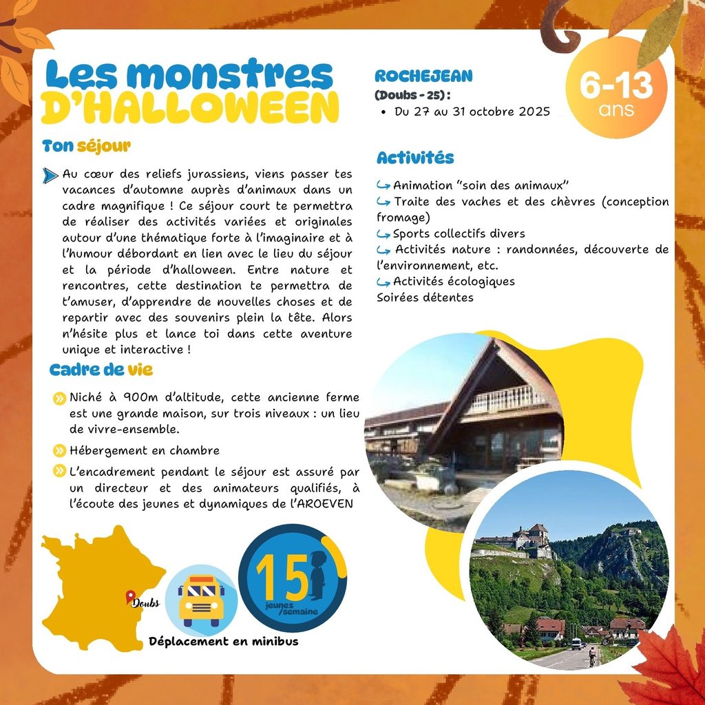 L’Association Régionale des Œuvres Educatives et de Vacances de l’Education Nationale (AROEVEN) de Franche-Comté vous propose un séjour de vacances d’une durée de 5 jours, du 27 au 31 octobre, dans une ferme pédagogique du Haut-Doubs.