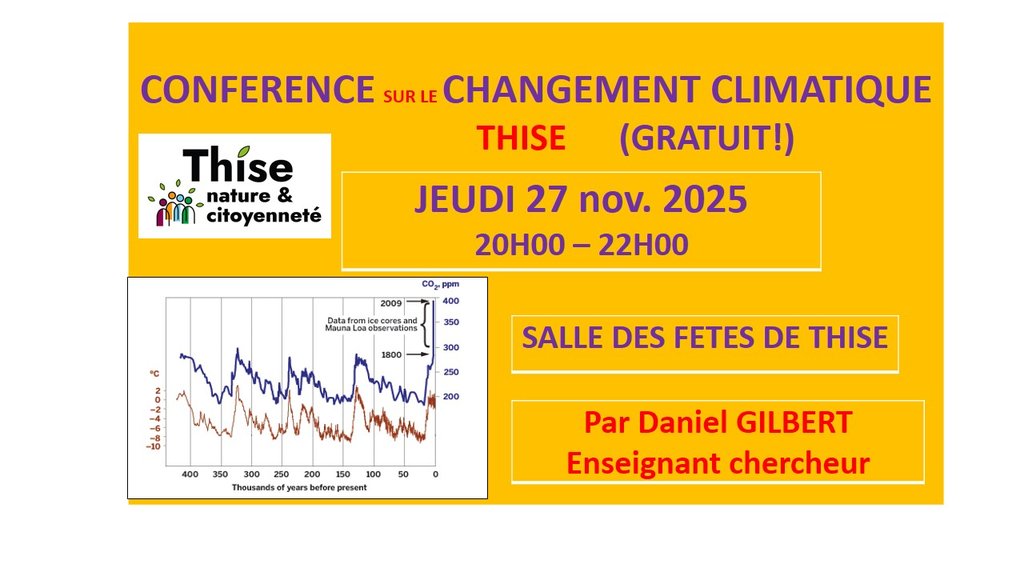 CONFÉRENCE SUR LE CHANGEMENT CLIMATIQUE À THISE LE JEUDI 27 NOVEMBRE 2025 À 20H00 (SALLE DES FÊTES)