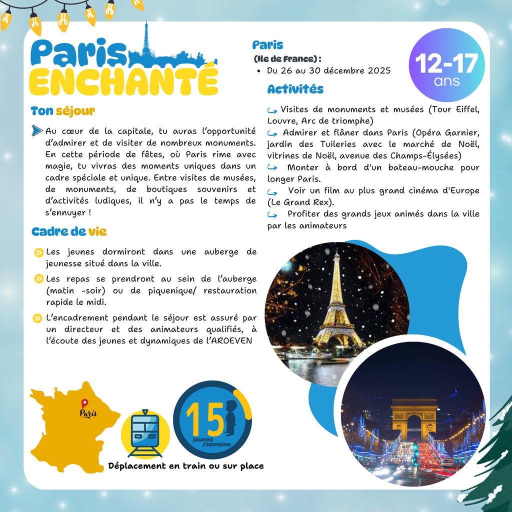 SÉJOUR POUR LES 12/17 ANS À PARIS AVEC L'AROEVEN