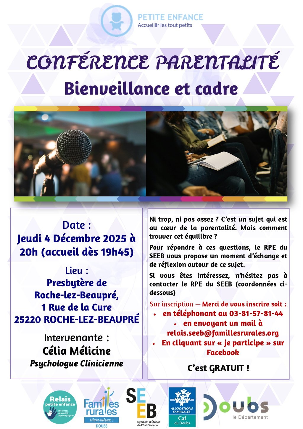 Relais Petite Enfance du SEEB : Conférence Parentalité " bienveillance et cadre"