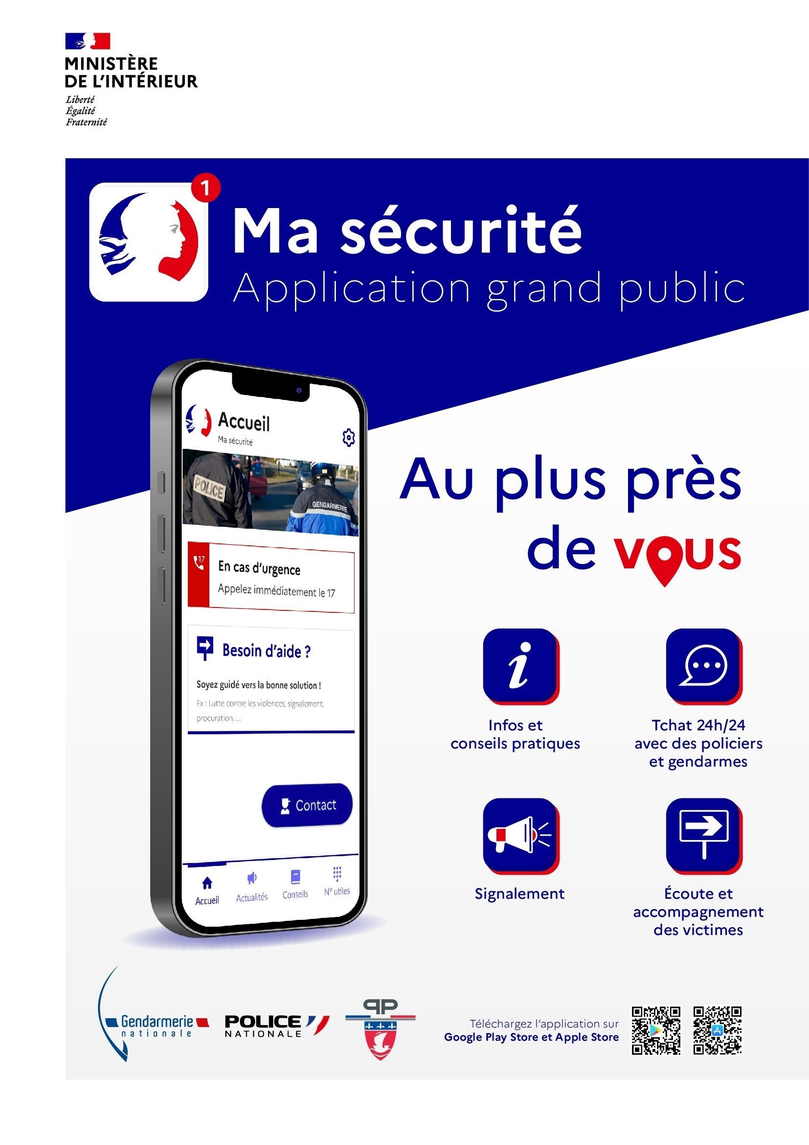 Disponible gratuitement sur les plateformes de téléchargement d’applications habituelles et sur l’ensemble des téléphones, l’application « Ma Sécurité » permet d’accompagner l’usager vers la solution la plus adaptée à ses besoins.