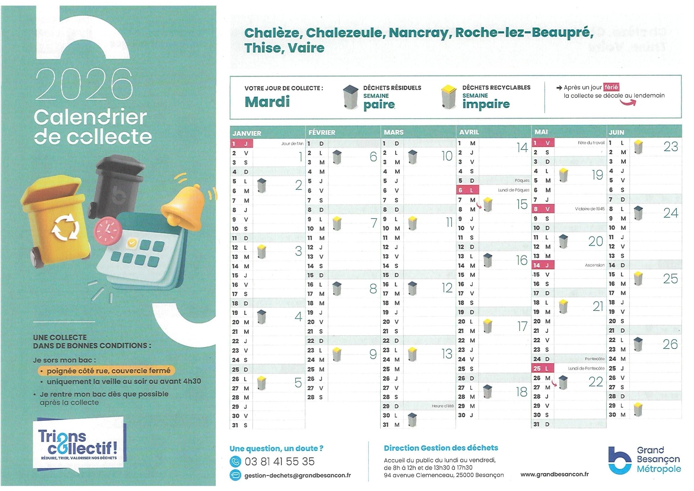 Calendrier de collecte : 1er semestre 2026 2ème semestre 2026